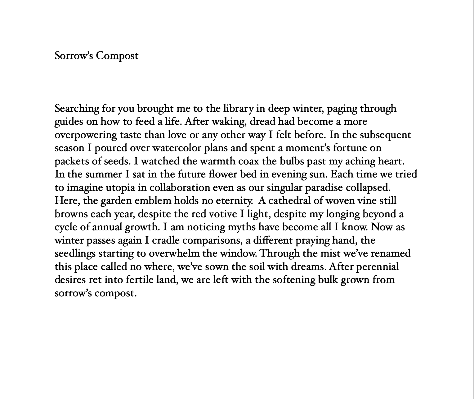 Sorrow's Compost, "the garden of dreams" Black Flower Publishing, 2023
